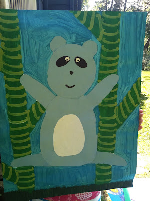 Friday we created Koi Fish Ponds inspired by Claude Monet. We started by using Tempera Paint and Pastel to do a wax resist to add lines and color into our ponds. Covering the piece of white paper with different colored paints was a lot of fun in itself! While the paintings dried, we cut out lily pads which were green versions of Pac-Man, and added tissue paper for the lily's.